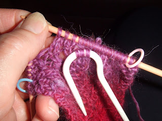 Then, knit the stitches off the cable holder. The shepherds hook style is so much easier to use.